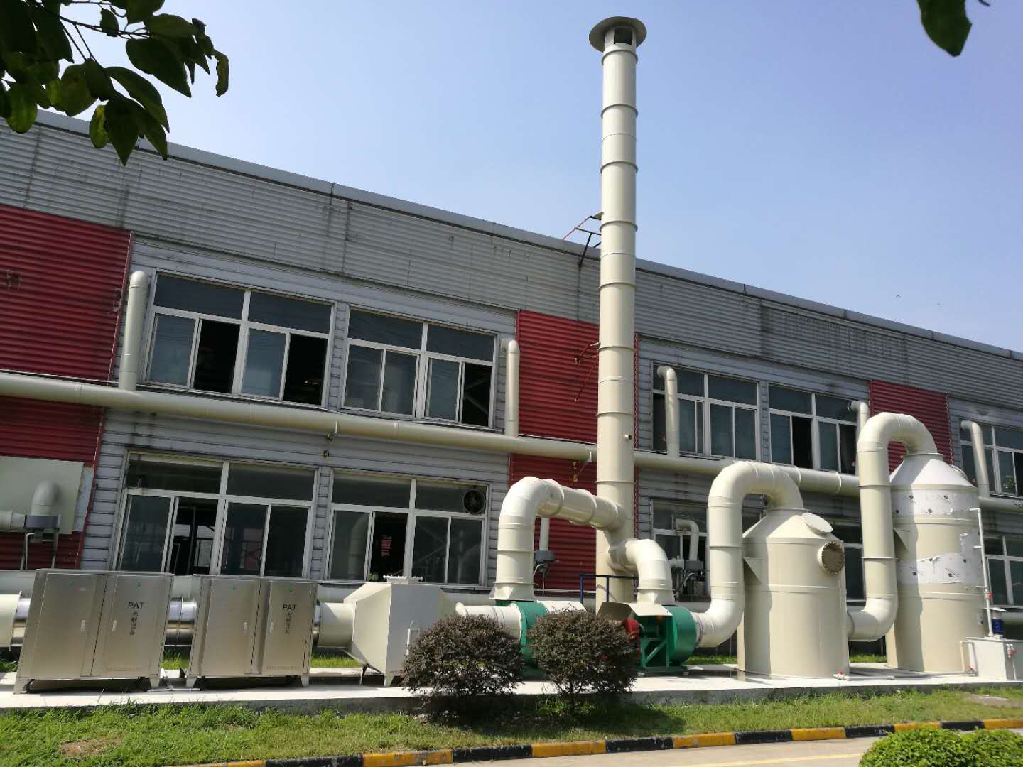 根据客户提供资料与公司技术人员交流得知:现有上下两层共18个废气排放口需要做废气治理,每个排放口的废气量为2000m3/h,所需治理的废气总量为:18×2000=36000 m3/h,考虑保险系数和风量损失,设计配备二套处理能力满足20000 m3/h的废气治理系统,两套废气治理系统净化后排气口合并到一根15米高烟囱达标排放。